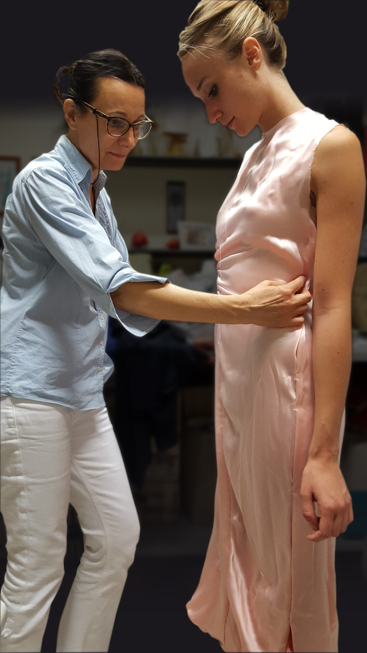 The measurements of the customer’s body, in all its parts, will make the garment a second skin, eliminating any small aesthetic defect that may arise. The pattern of the garment is reproduced on paper and then the fabric is cut and shaped on the mannequin. First test, with the final and definitive shaping. The final touch is the perfection of the finish and the attention to detail.