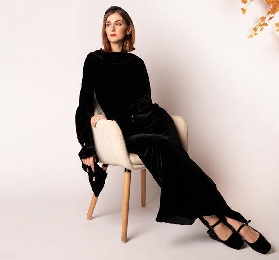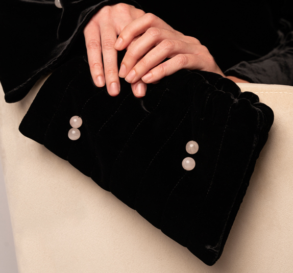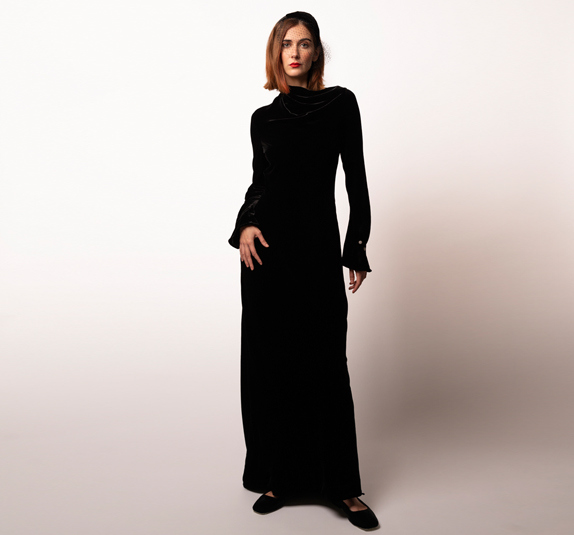 No introduction is needed to the black velvet dress; a timeless staple of the winter wardrobe that gets a makeover. The velvet dress can really have many souls, from office to ceremony. You just need to know how to choose and match it. The black velvet dress, with its versatile, wrap-around and truly feminine appeal, is the ultimate in elegance for a special occasion or end-of-year party. In the haute couture scene, there are many designers who have presented their idea of the velvet dress on the catwalk, redefining the concept of “classic” and shaping it to make it current and cool; there are many variations on the theme, and they do not only concern the fit or the length of the hemline, because the proposals can actually also take shape through the season’s trendy colors, which complement the timeless total black look. When you want to be flawless but are in a quandary about what dress to wear, there will always be a velvet dress to solve the situation in a jiffy: it should not be pulled out only for end-of-year parties, or for other special occasions: street style and fashionistas have already flaunted it, turning it into a garment to be used every day, and for every situation, especially for elegant dinners and evenings. My model of black silk velvet dress, long and with a slightly flared bottom; mysterious and charming, it has long sleeves, bias workmanship, with particular play of draping and refined details. Matching it is a handbag lined with silk fabric, containing, inside, a pretty coin purse.