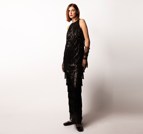 Categories: Bespoke, Clothing, Tailor-made hancrafted, Women's dressesThis long fringed black sleeveless dress was made from sequined fabric with fringe appliqué; elegant and refined, ideal as an evening gown, like those worn by the divas of the 1920s, or as a formal dress, with understated makeup to allow the dress to be the real star. Indispensable for not going unnoticed.
