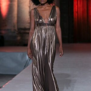 La scelta delle scarpe diventa importantissima per completare l’outfit per questo splendido abito lungo in fluido jersey di viscosa.
