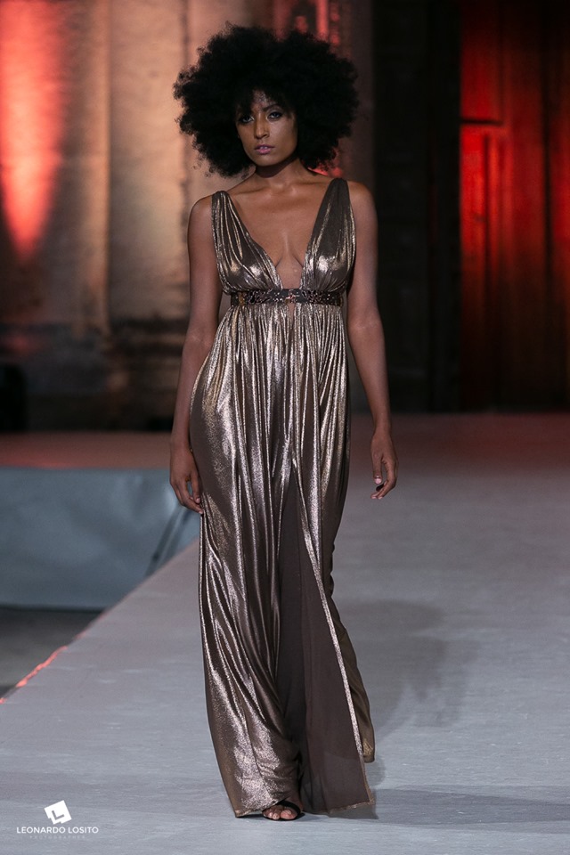 Un’eleganza sobria ma molto sensuale, grazie allo spacco sul davanti che permette dolci giochi di seduzione.