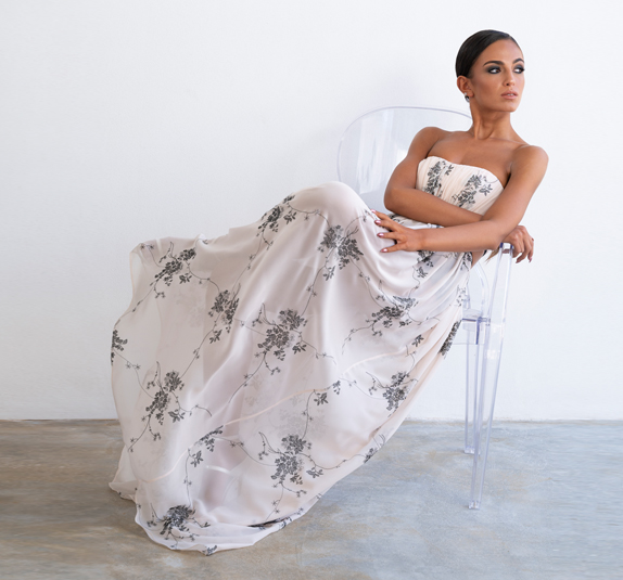 Un’eleganza sobria ma molto sensuale, grazie allo spacco sul davanti che permette dolci giochi di seduzione.