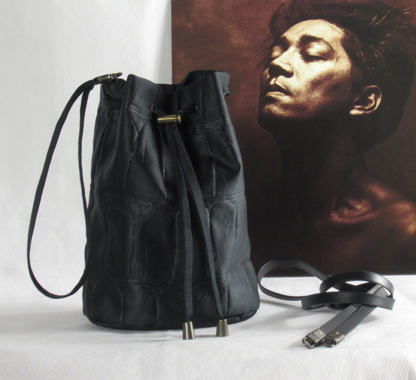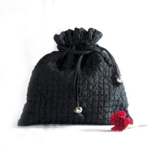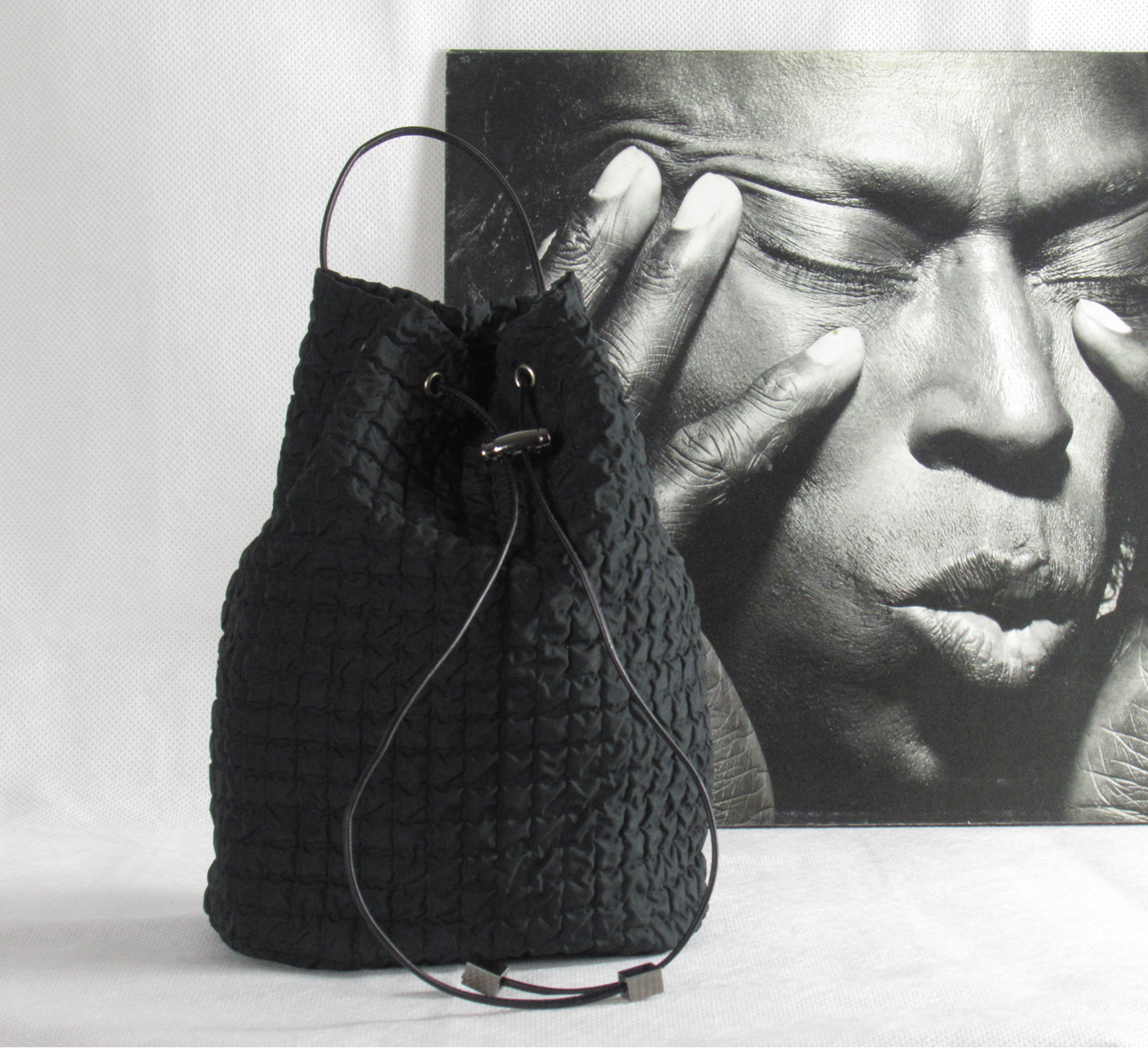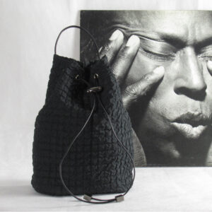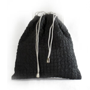 Una piccola curiosità: la borsa a forma di secchiello fu realizzata per trasportare bottiglie di champagne, poi l’alta moda se n’è appropriata rendendola famosa nel mondo. Apparsa nelle sfilate negli anni Sessanta si è affermata come simbolo di lusso, funzionale e allo stesso tempo elegante, pratica da indossare in ogni momento della giornata. Tra le più famose ricordiamo quella di Louis Vuitton, di Prada e di Bottega Veneta. Questa borsa mini a mano con coulisse in misto seta, modello a secchiello e con chiusura a coulisse è foderata in tessuto nero. Confezionata e rifinita a mano con materiali di prima qualità. Compatta, semplice e raffinata, adatta per ogni occasione.