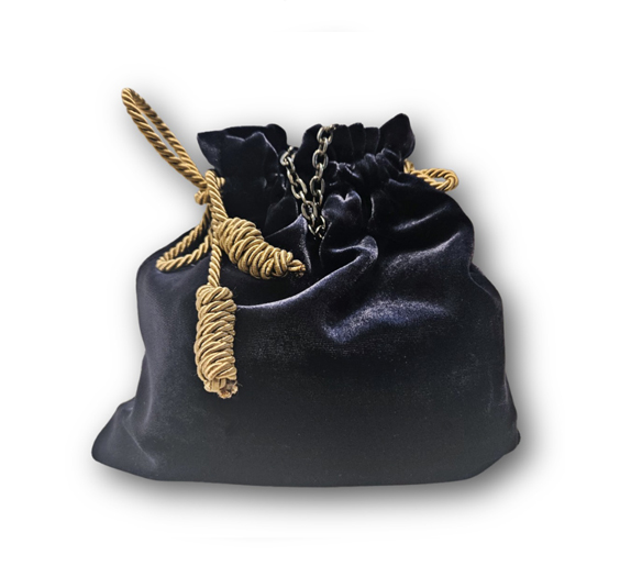 La borsa da polso, con manico a nodo in stile giapponese ha una forma triangolare e richiama, infatti, le confezioni realizzate con pezzi di stoffa dai giapponesi secondo l'antica arte nota come furoshiki, con un nodo sulla parte superiore. Questa deliziosa borsetta è un modello da portare a mano o al polso che, nonostante il suo minimalismo si fa notare. E’ realizzata in velluto a fantasia cashmere con sfumature dorate e fodera interna nera in crepé cady lucido, reversibile per essere usata da entrambi i lati. Confezionata e rifinita a mano con materiali di prima qualità. Compatta, semplice e raffinata, adatta per serate eleganti.